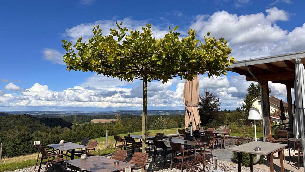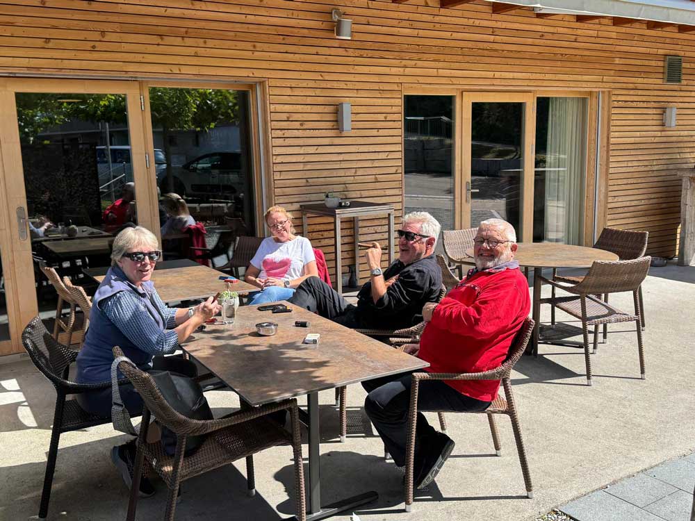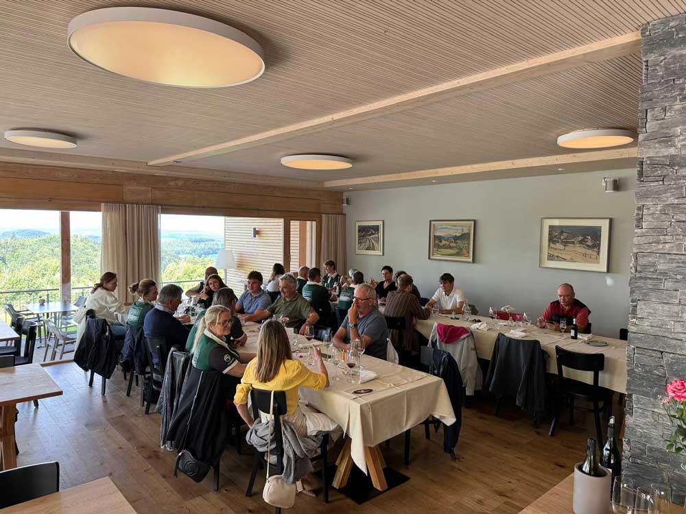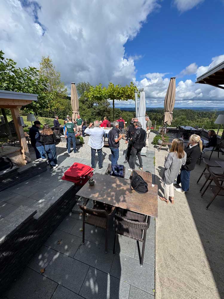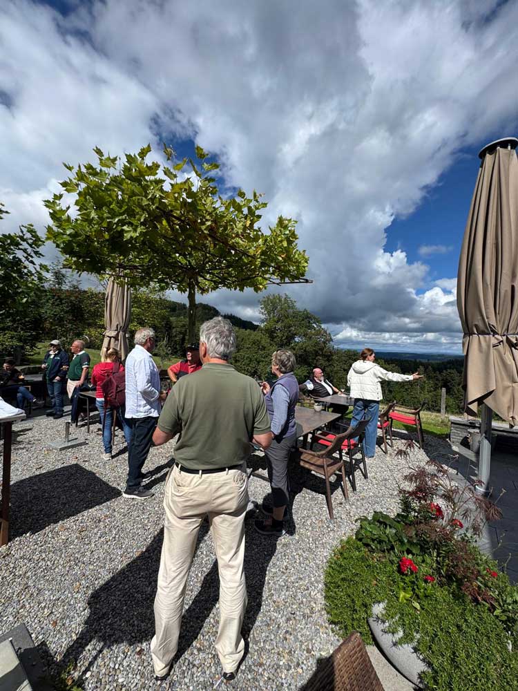 Die kurven- und trickreiche Route führte uns mal rauf mal runter über den Hasenstrick und den Sternenberg zum Restaurant Schauenberg in Hofstetten. Dort genossen wir zuerst einen schönen Apéro im Garten, gefolgt von einem sehr leckeren Mittagessen – begleitet von aufmerksamen und freundlichen Gastgebern.